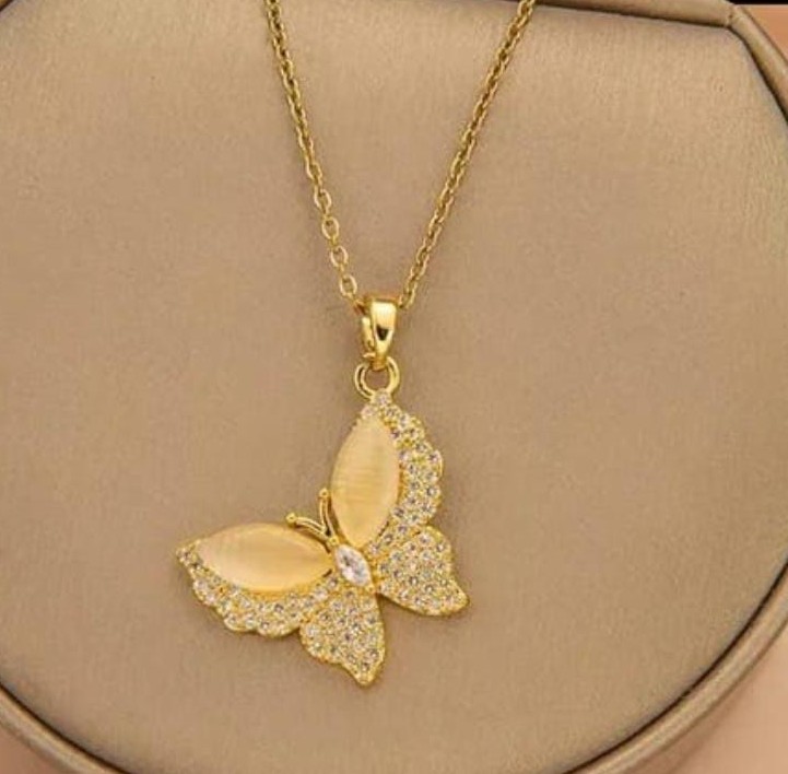 Graceful and glittering, this butterfly pendant blends elegance with charm. Finished with high-shine stones and anti-tarnish coating for long-lasting beauty.